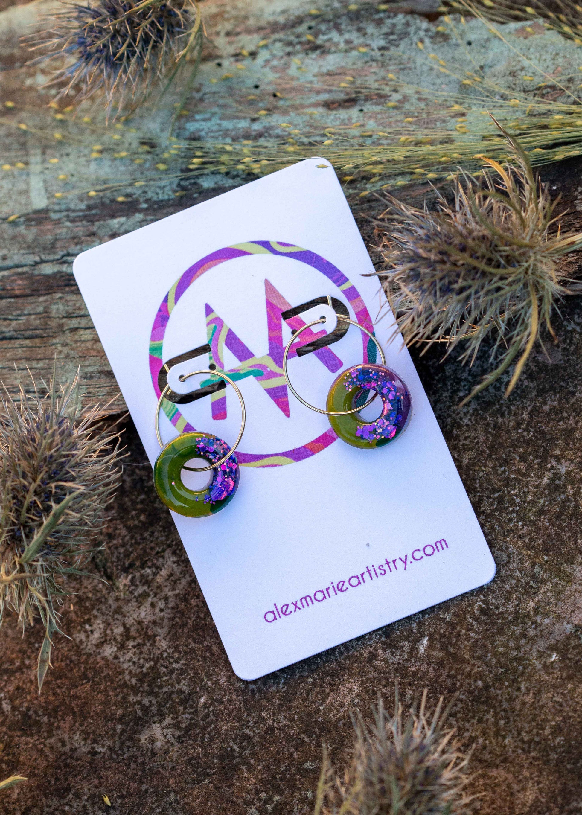 These playful hoop earrings feature charming donut-shaped charms that add a sweet and quirky touch to your style. Lightweight and easy to wear, they’re perfect for adding a dash of fun to any outfit.
