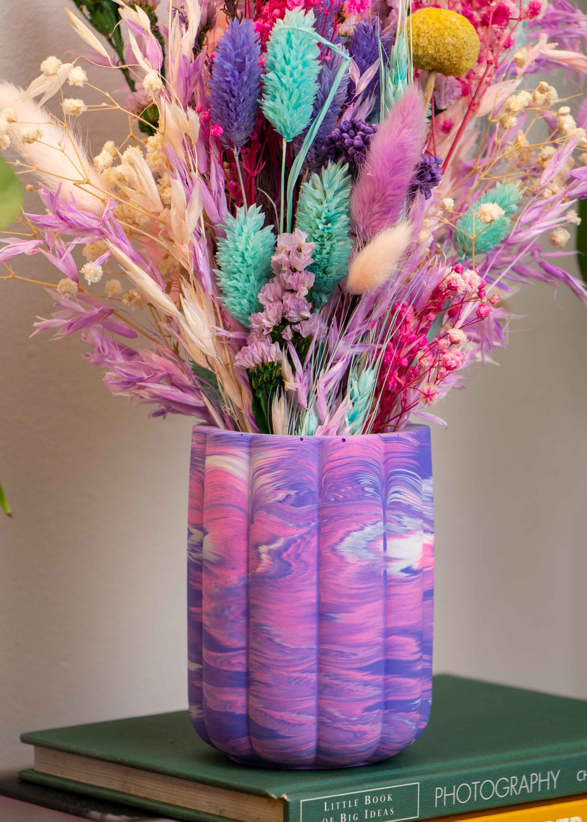 A bumpy vessel in various colours. This vessel can be used to store pens, brushes or can even be used as a vase.